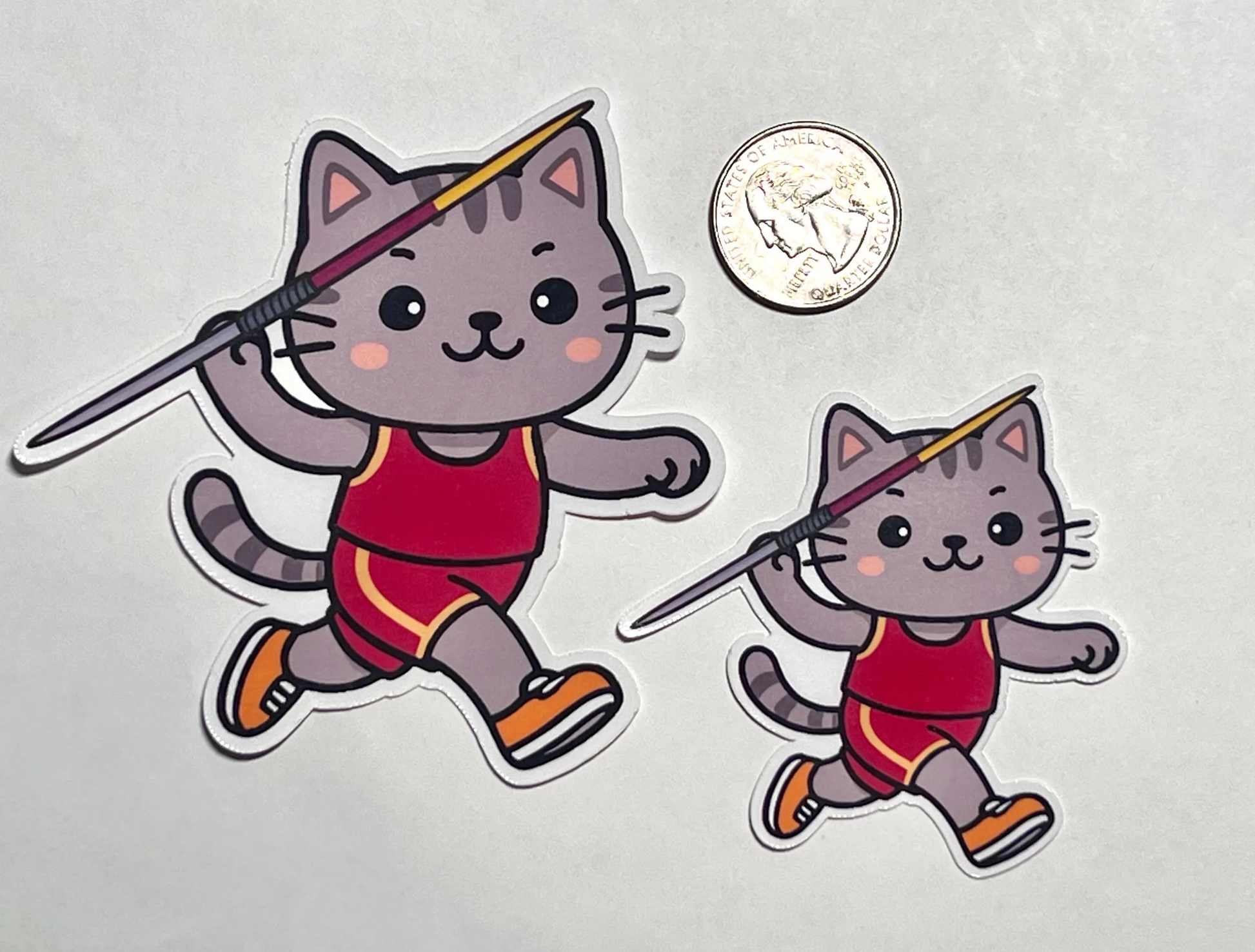 Javelin Track Cat Sticker | Kitty Throwing Javelin | Water Bottle Sticker A cute sticker of a cat about to throw a javelin. This is a fun sticker for anyone who participates in or loves track and field. Use this sticker on your water bottle, water cooler, laptop. It's a great gift for high school athletes.